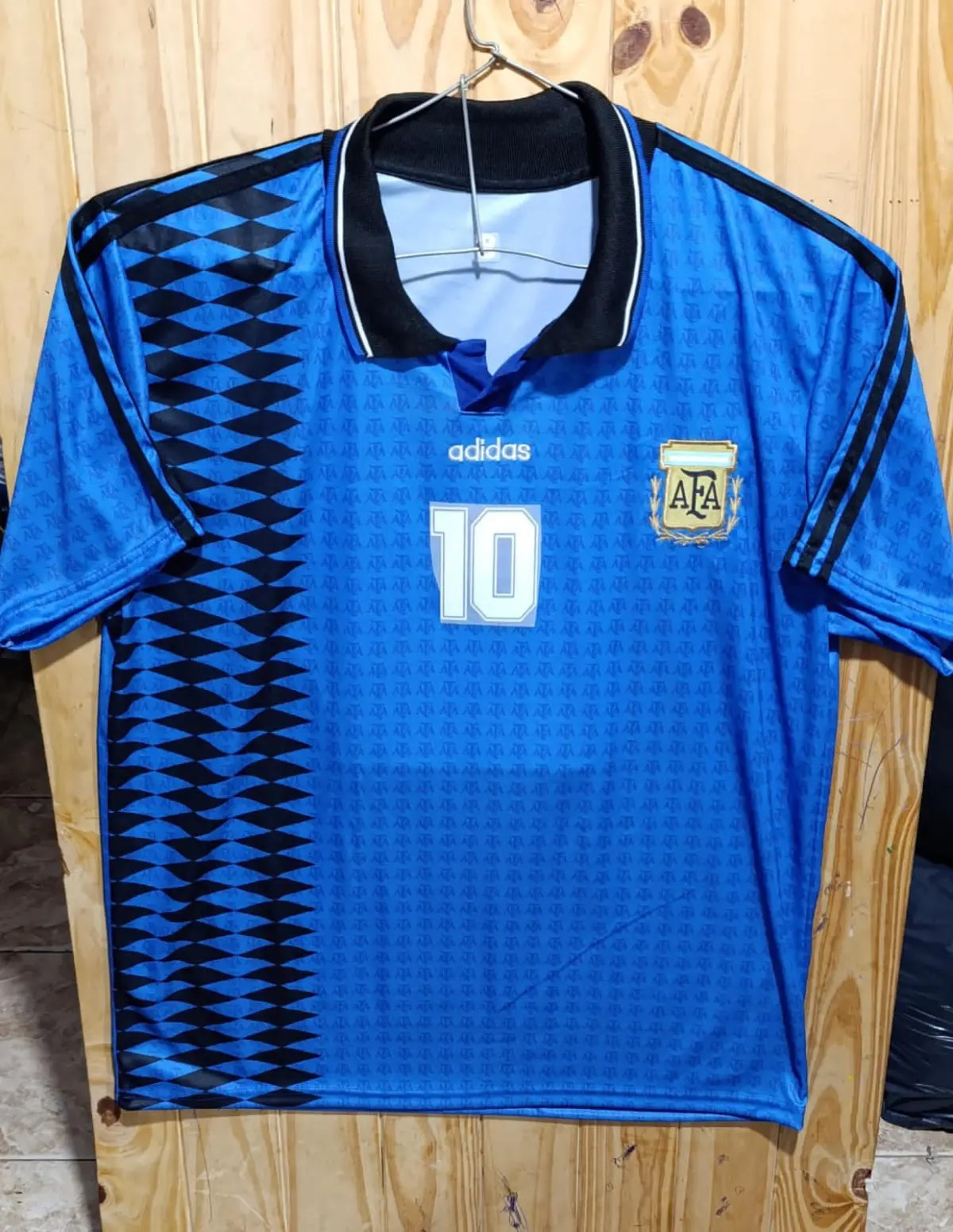 La camiseta Argentina retro 1994 rinde homenaje a una era inolvidable del fútbol y a quien convirtió esa camiseta en leyenda: el número 10. Su diseño clásico con detalles geométricos y cuello negro simboliza el espíritu de una selección que jugaba con el alma y emocionaba a todo un país.