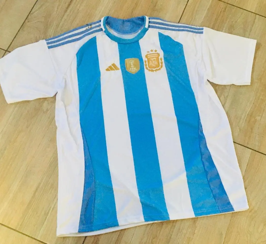 La camiseta oficial de la Selección Argentina con el escudo dorado del campeón simboliza mucho más que fútbol: representa esfuerzo, unión y el sueño cumplido de un país entero.