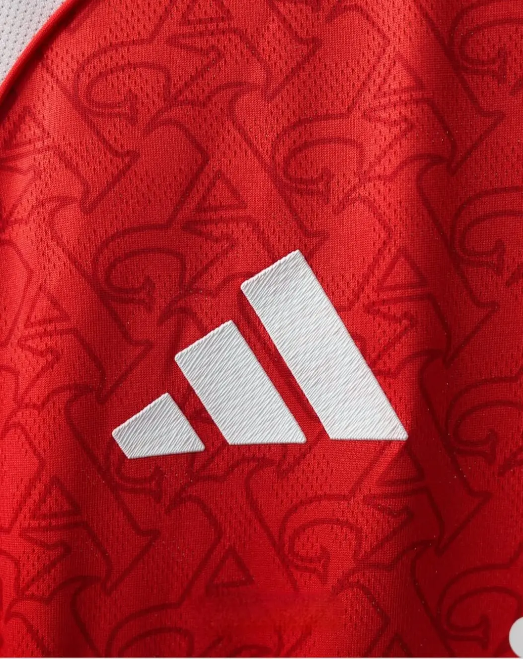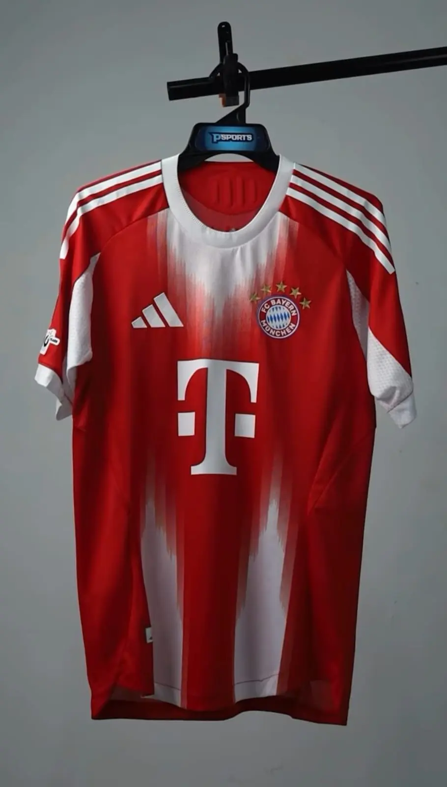 La Bayern Múnich Titular 2024/25, firmada por Adidas, presenta un diseño que fusiona lo clásico y lo contemporáneo: franjas verticales rojas con efecto degradado en blanco, evocando las épocas doradas del club pero con una estética vanguardista.