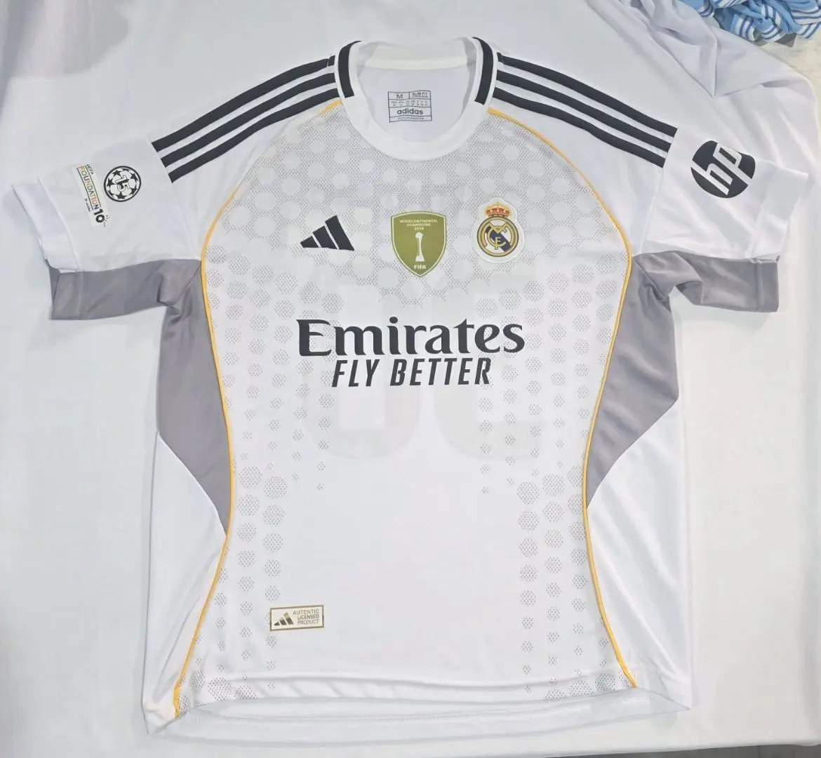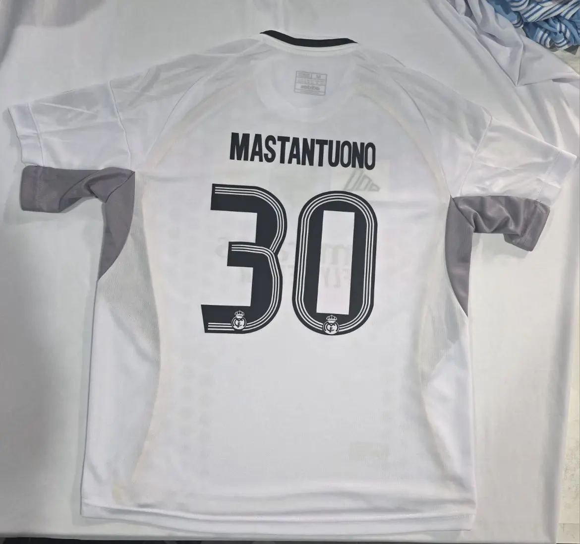 Con su diseño blanco puro y detalles dorados, refleja la grandeza y el estilo único del club más ganador del mundo, acompañado por la inspiración del joven Mantantuono, una de las grandes promesas del fútbol actual.