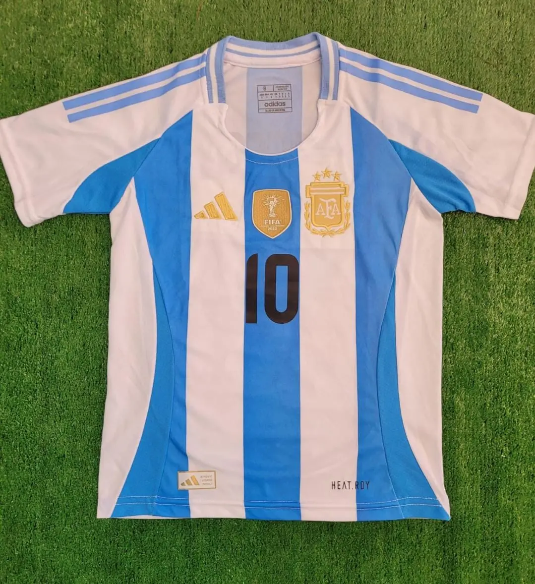 Con las tres estrellas que representan el esfuerzo de generaciones, esta camiseta celebra el legado del fútbol argentino y la magia del 10 que hizo historia.