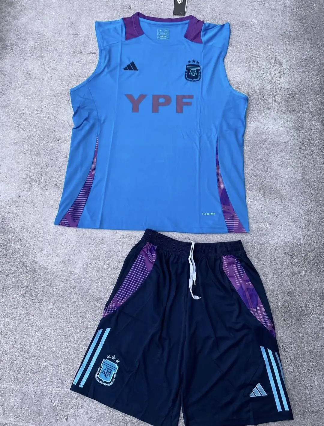 Conjunto de la Selección Argentina compuesto por musculosa y shorts combinados.
