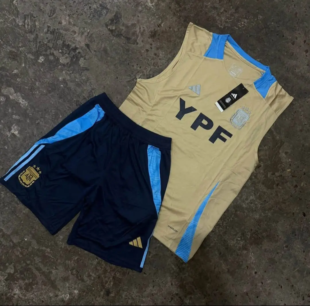 Este conjunto de la Selección Argentina combina musculosa y shorts confeccionados en tela deportiva de alta calidad, ofreciendo frescura, comodidad y un diseño fiel a los colores celeste y blanco que hicieron historia en Qatar 2022.