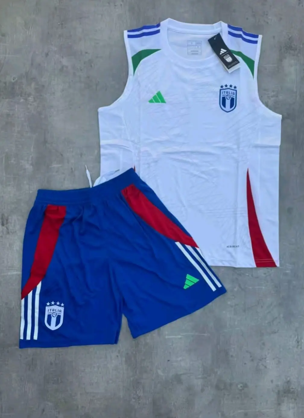 Conjunto de la Selección de Italia compuesto por musculosa y shorts combinados.